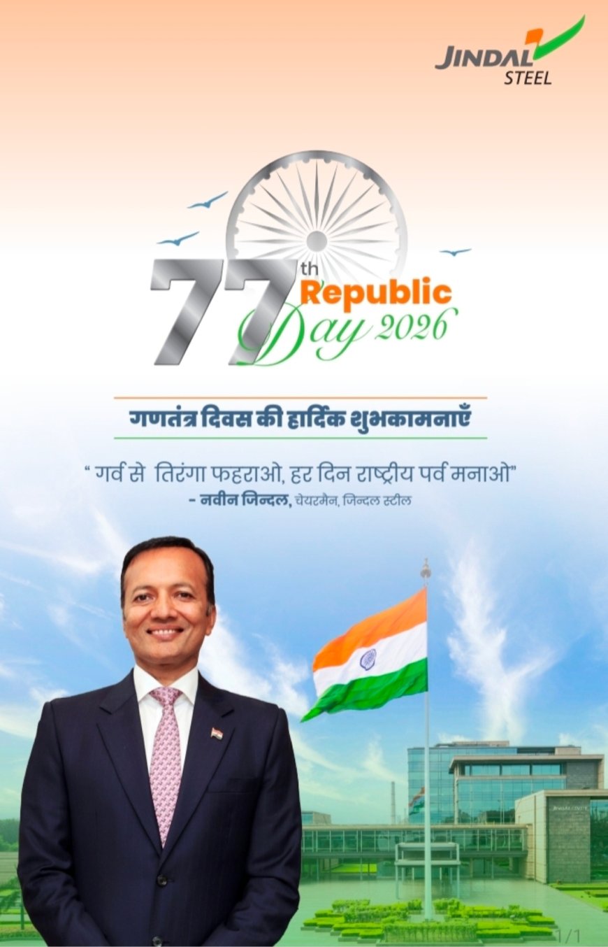 गणतंत्र दिवस के अवसर पर जारी अपने संदेश में जिंदल स्टील समूह के चेयरमैन श्री नवीन जिंदल ने कहा कि गणतंत्र दिवस हमें यह याद दिलाता है कि हमारा संविधान सिर्फ एक दस्तावेज नहीं, बल्कि समानता, स्वतंत्रता और जिम्मेदारी का एक जीवंत संकल्प है। संविधान हमें अधिकार देता है और साथ ही देश के प्रति हमारे कर्तव्यों की भी निरंतर याद दिलाता है। उन्होंने कहा कि आज जब हम गर्व के साथ तिरंगे को फहराते हैं, तो यह आवश्यक है कि उसके पीछे निहित मूल्यों को भी अपने जीवन में आत्मसात करें। श्री जिंदल ने सभी नागरिकों से एक जिम्मेदार नागरिक के रूप में राष्ट्र निर्माण में योगदान देने और हर परिस्थिति में तिरंगे के सम्मान को बनाए रखने का आह्वान किया।